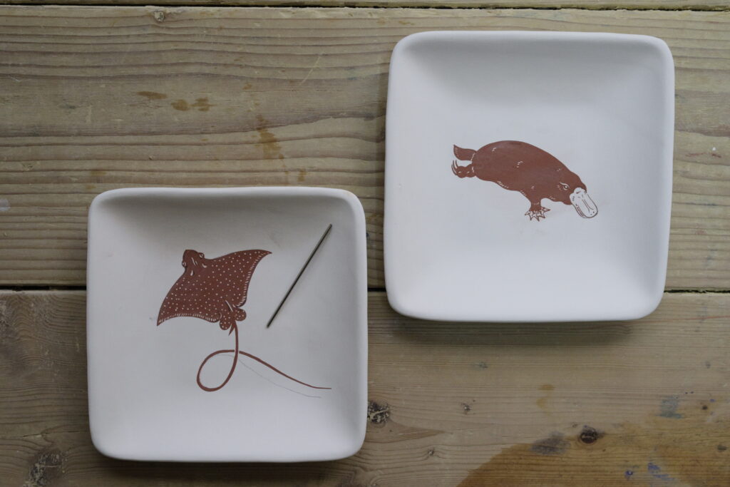 釘のように先が尖った道具だと線の太さがほとんど一定ですが、この道具は力の入れ具合、角度の違いで細い線や太い線を掘り分ける事ができるので、線に動きが出せます。